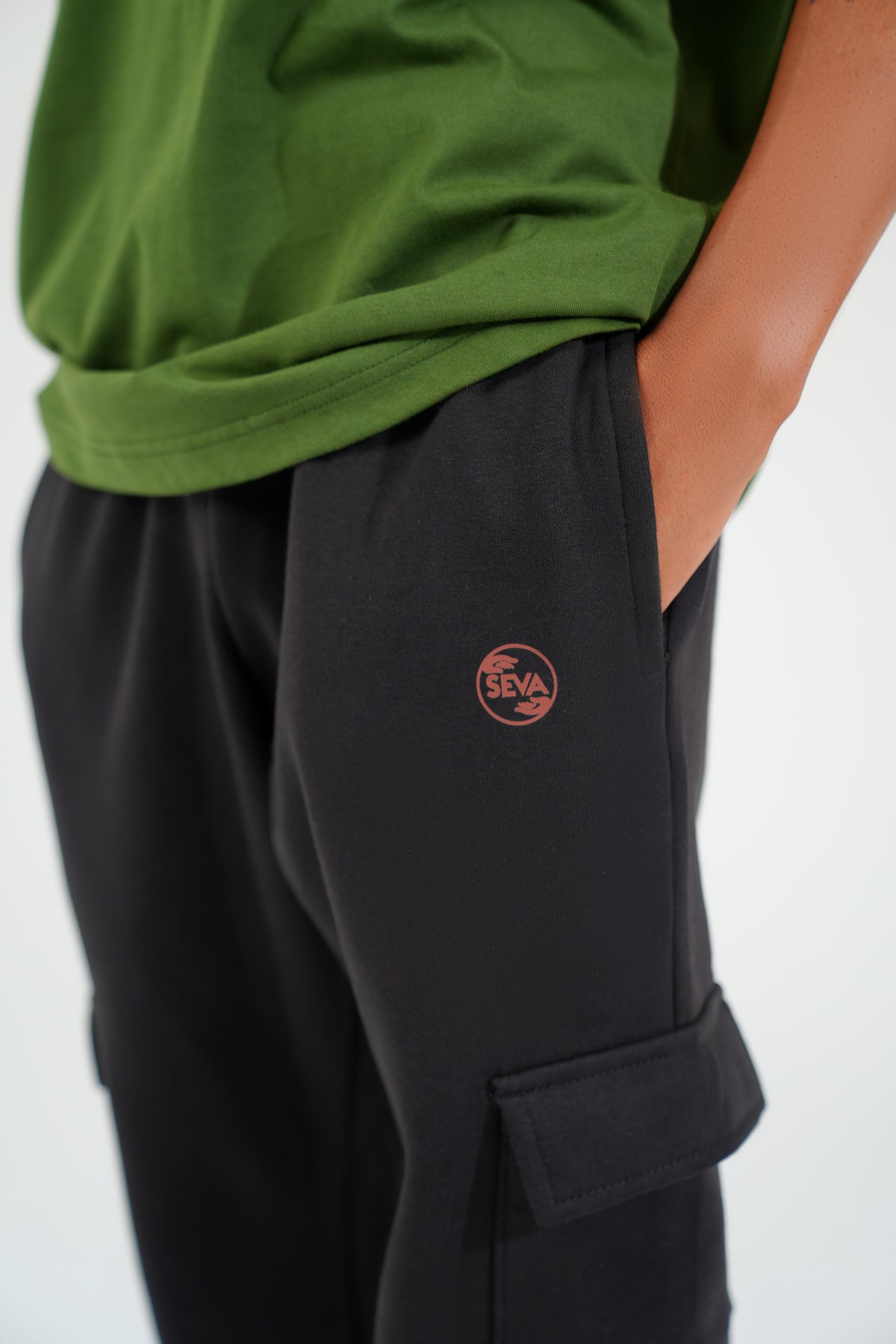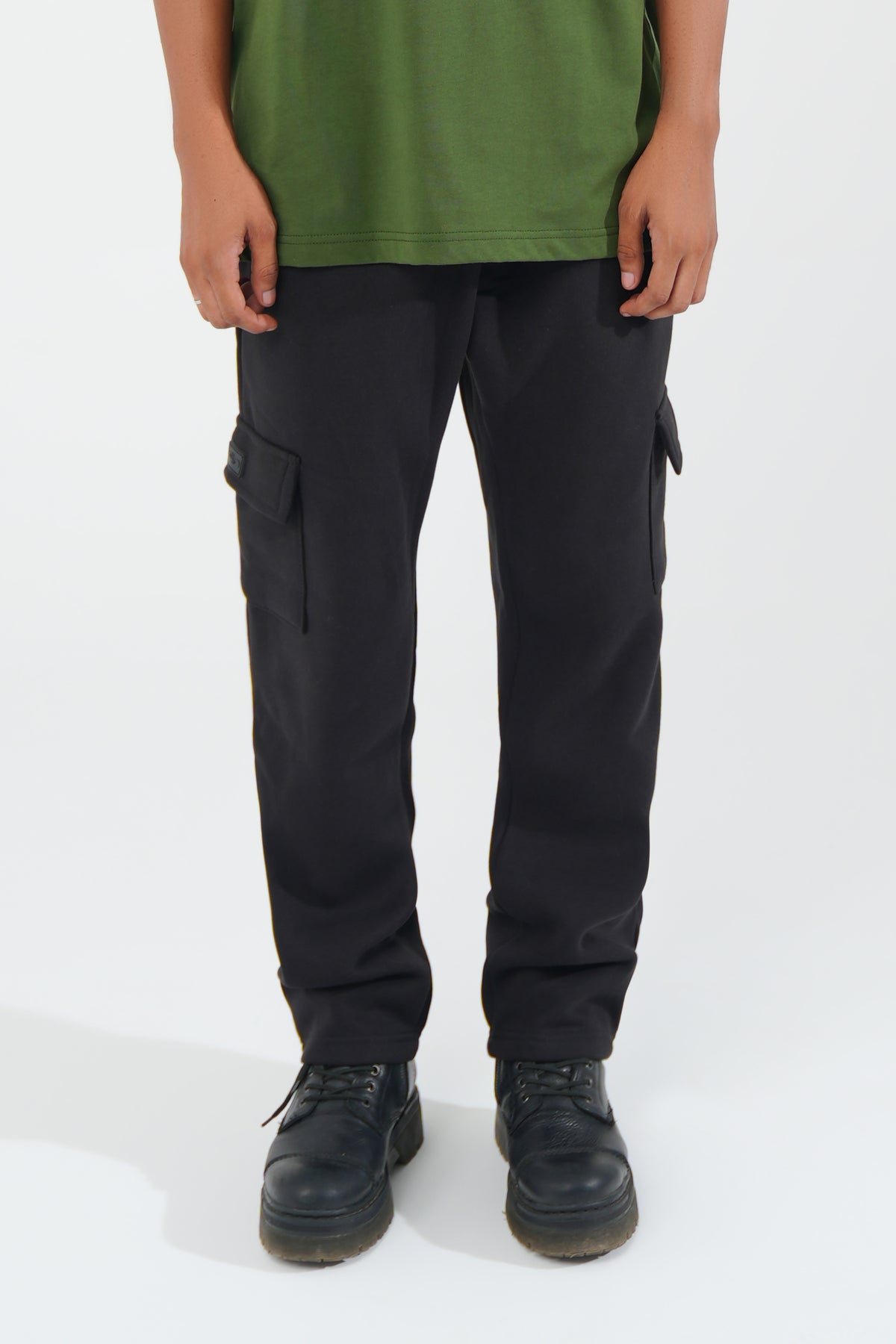 These black fleece cargo pants offer a sleek blend of comfort and function. Designed with a relaxed fit and multiple cargo pockets, they're perfect for everyday wear with a streetwear edge.