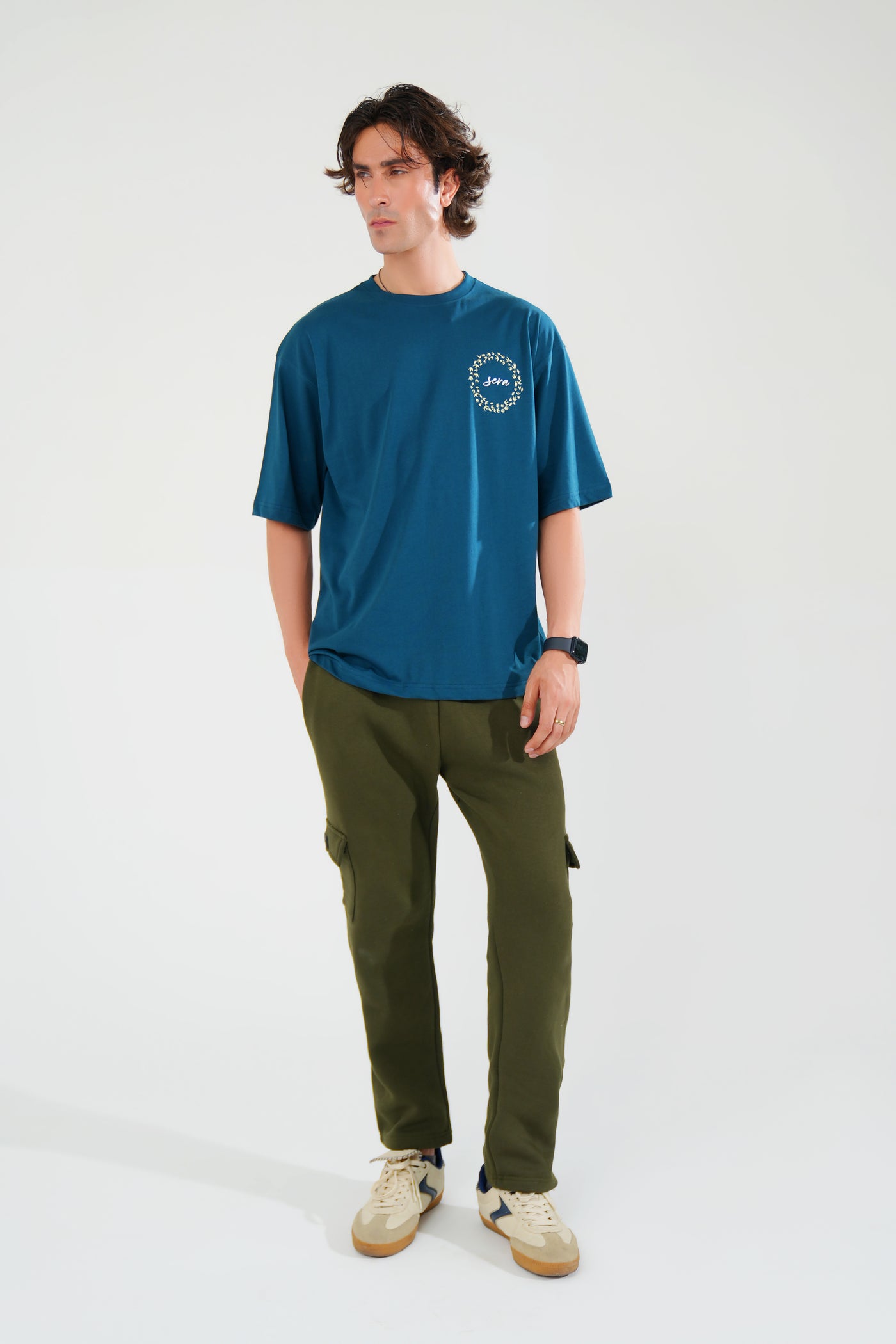 Refresh your casual style with this blue oversized graphic tee. Made from breathable cotton, it offers a roomy fit and...
