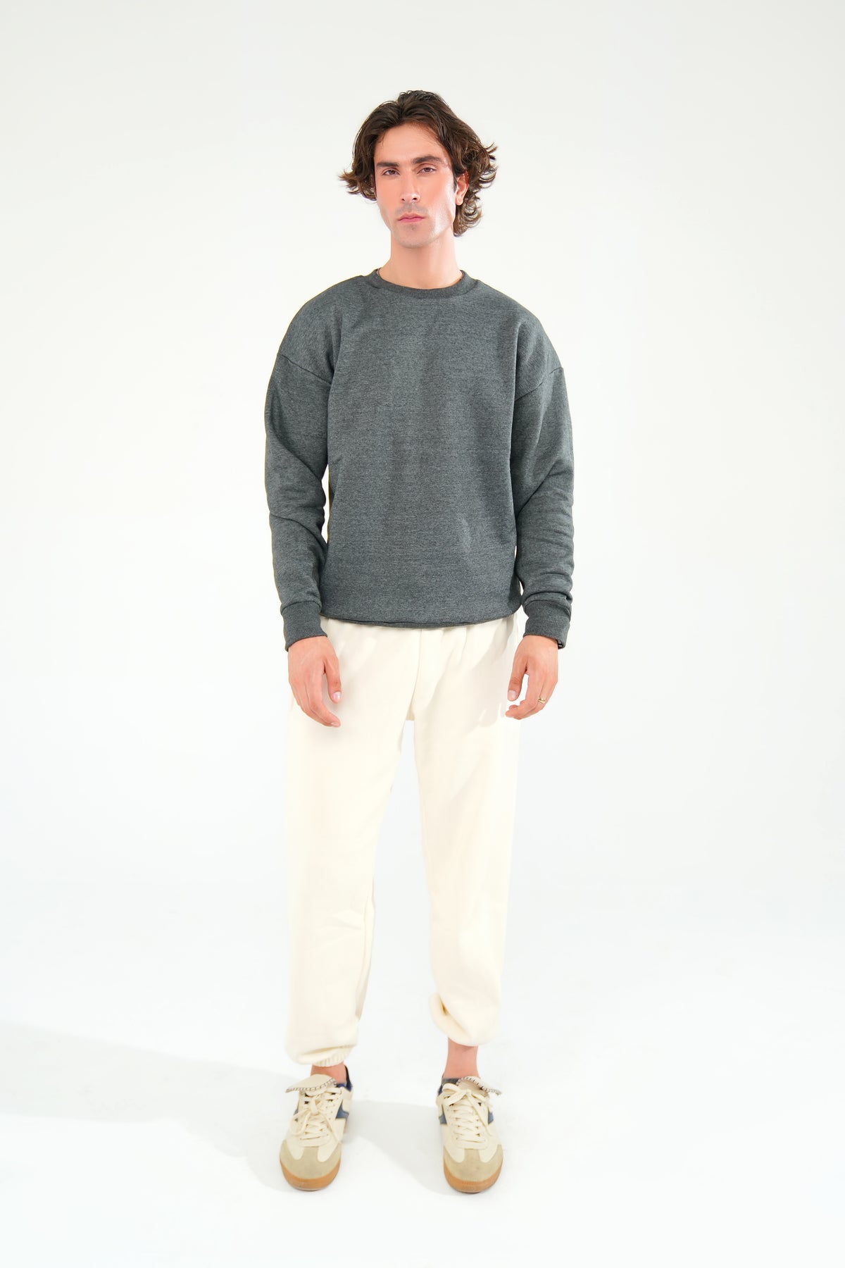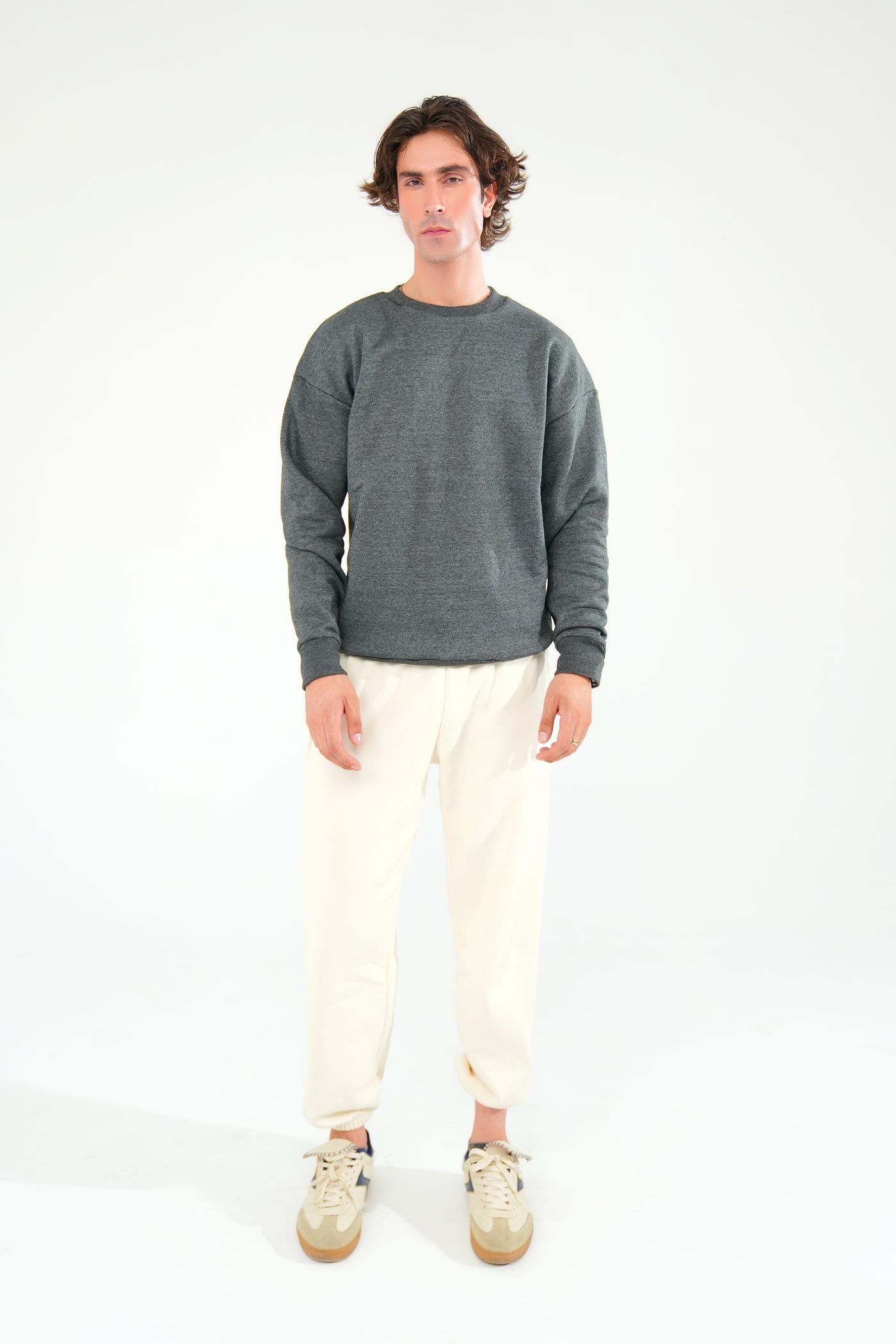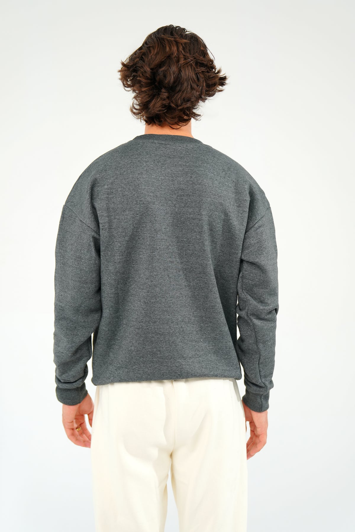 Elevate your basics with this charcoal grey oversized sweatshirt. Built from thick 350 GSM fleece, it offers a warm, comfortable fit and a clean silhouette. Ideal for casual styling or pairing with joggers for a complete streetwear look.