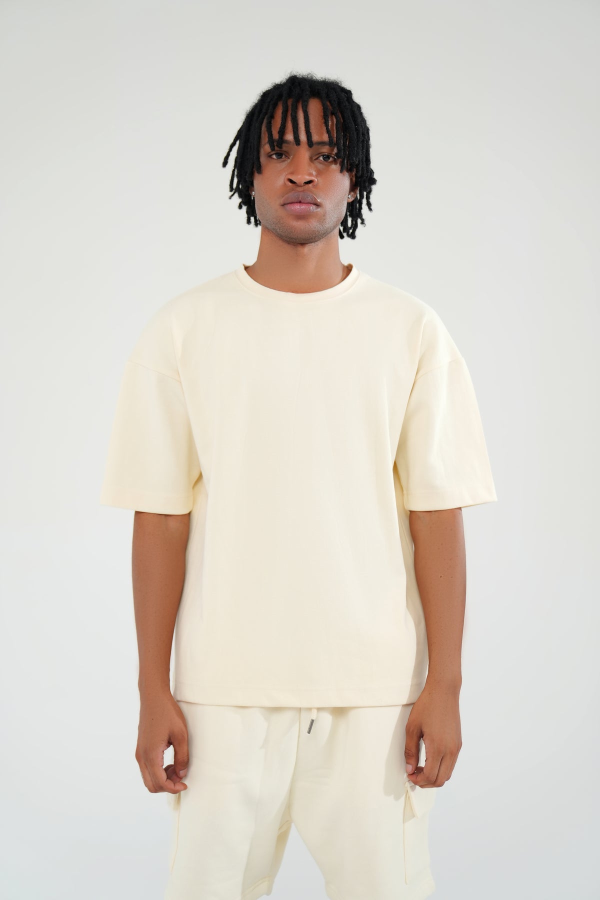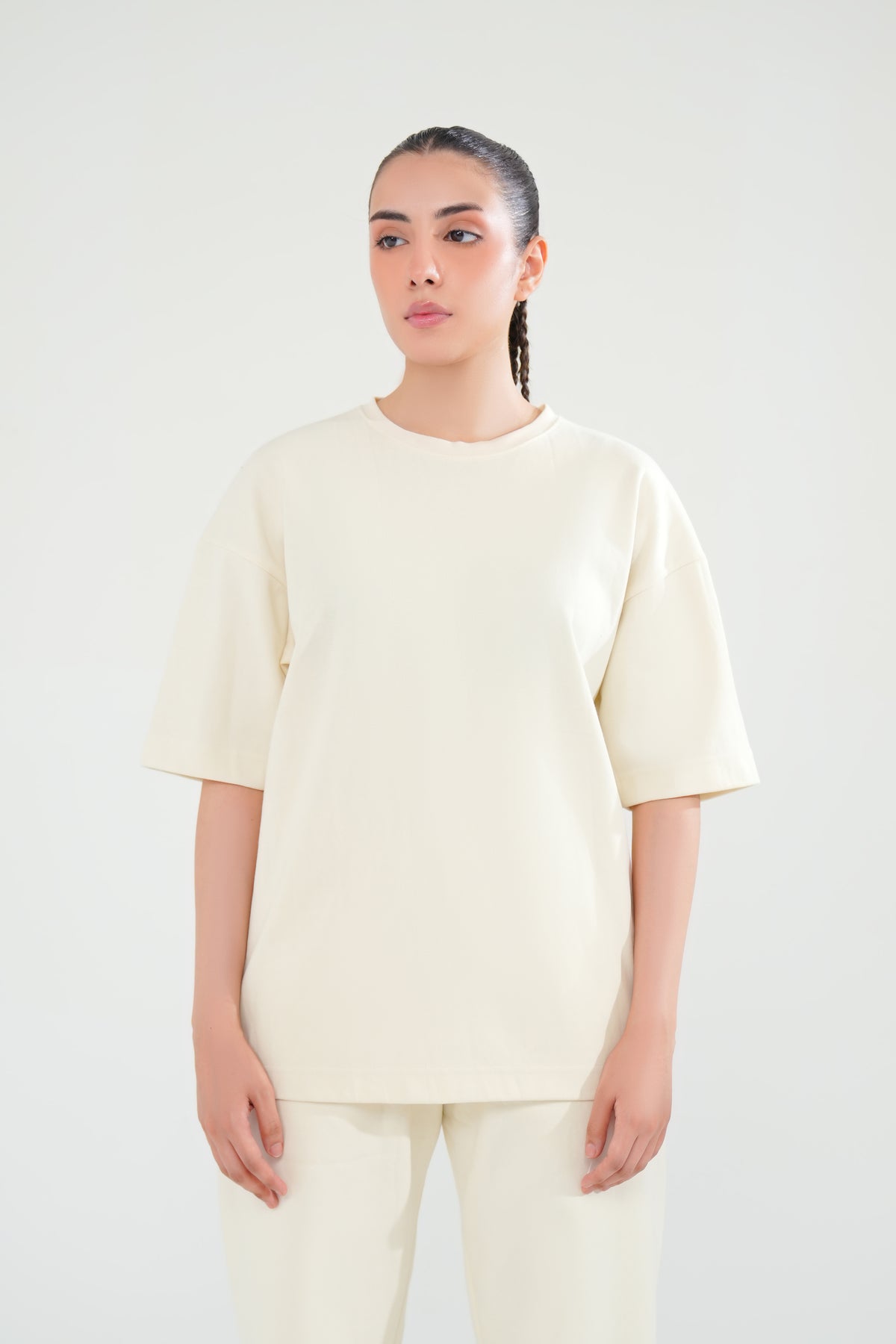 Stay comfortable and stylish in this beige oversized plain tee, crafted from a high-quality cotton-polyester blend. With its minimalist look...